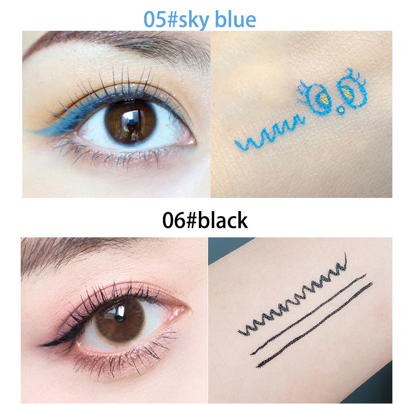 - مقاوم للماء ومضاد للتلطخ: التركيبة الخاصة تجعل محدد العيون الملون يتمتع بتأثير مقاوم للماء ومضاد للتلطخ، والذي يدوم دون تلطخ.
