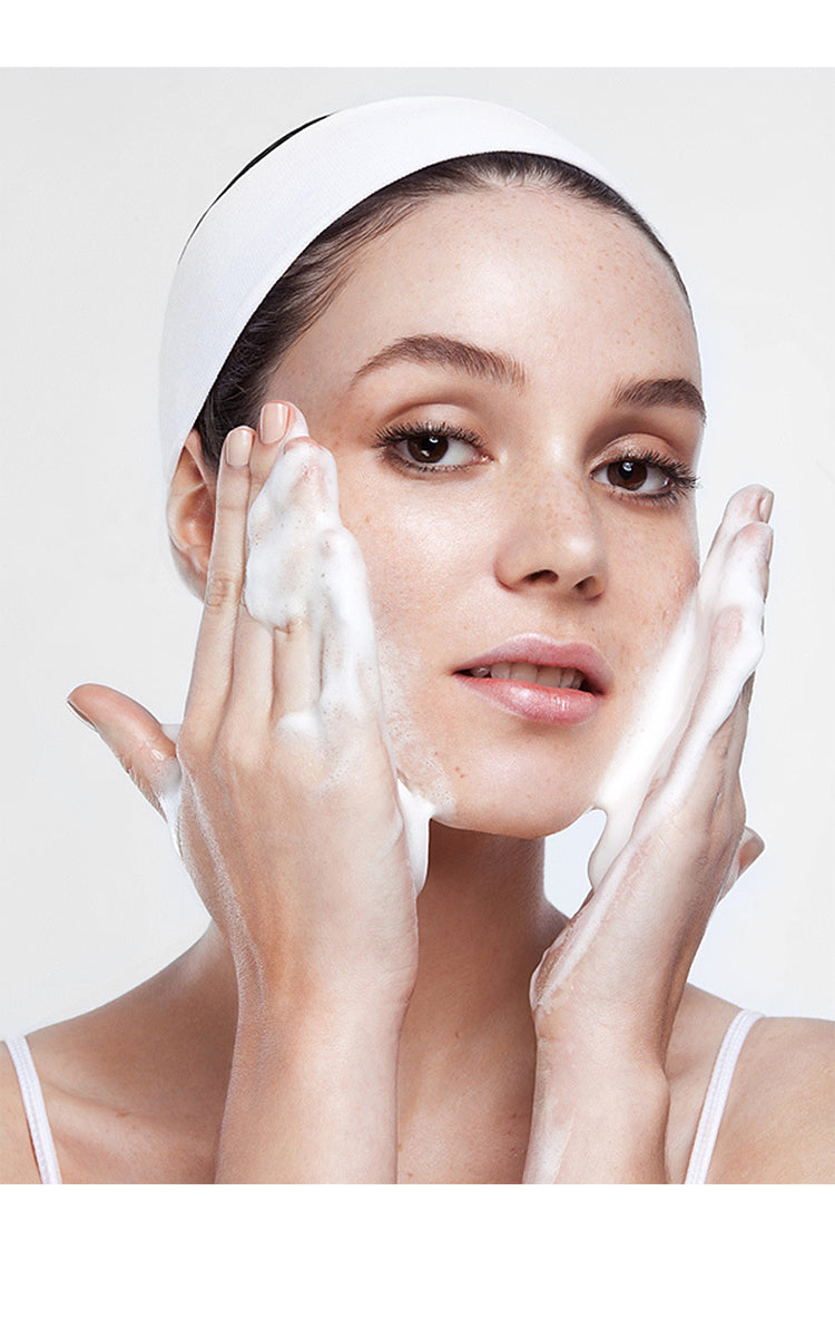 Ambil pembersih asam amino dalam jumlah yang sesuai ke telapak tangan Anda dan gosok dengan lembut untuk membuat busa.