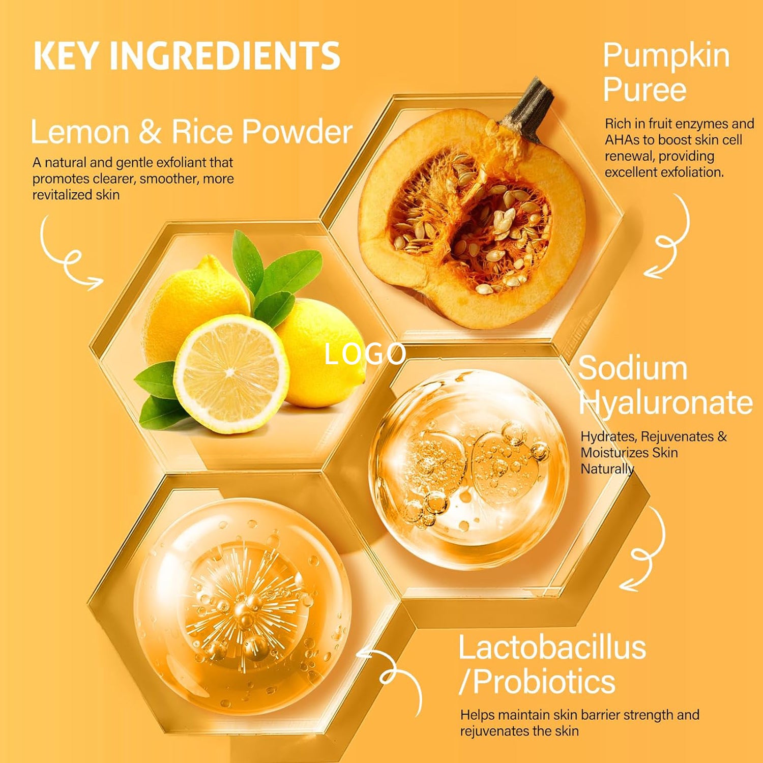 - かぼちゃ酵素: 肌を滑らかにし、明るくする天然の角質除去剤。